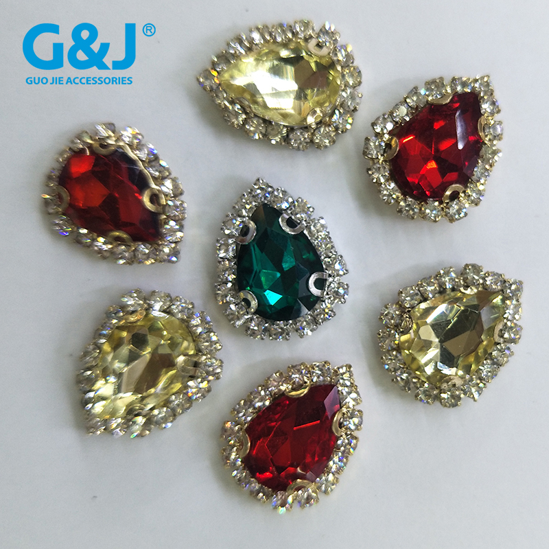水滴形烧焊链条玻璃上D形爪扣上钻 手缝压克力上钻婚纱辅料配件