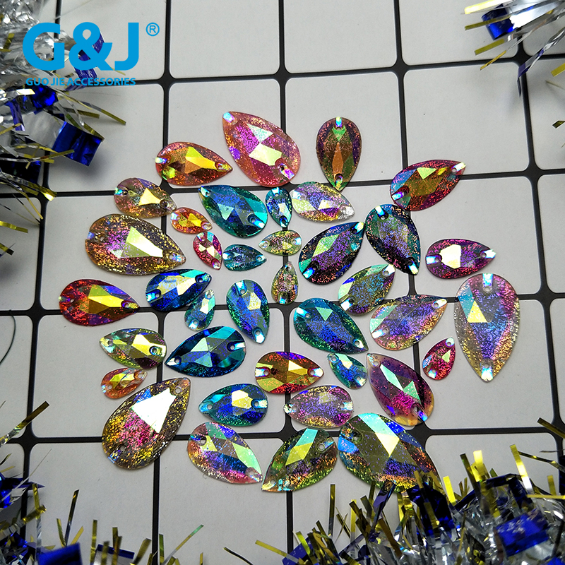 树脂平底钻石双孔模具孔俏翘马眼葱粉AB彩纱巾纱丽服装装饰亮片