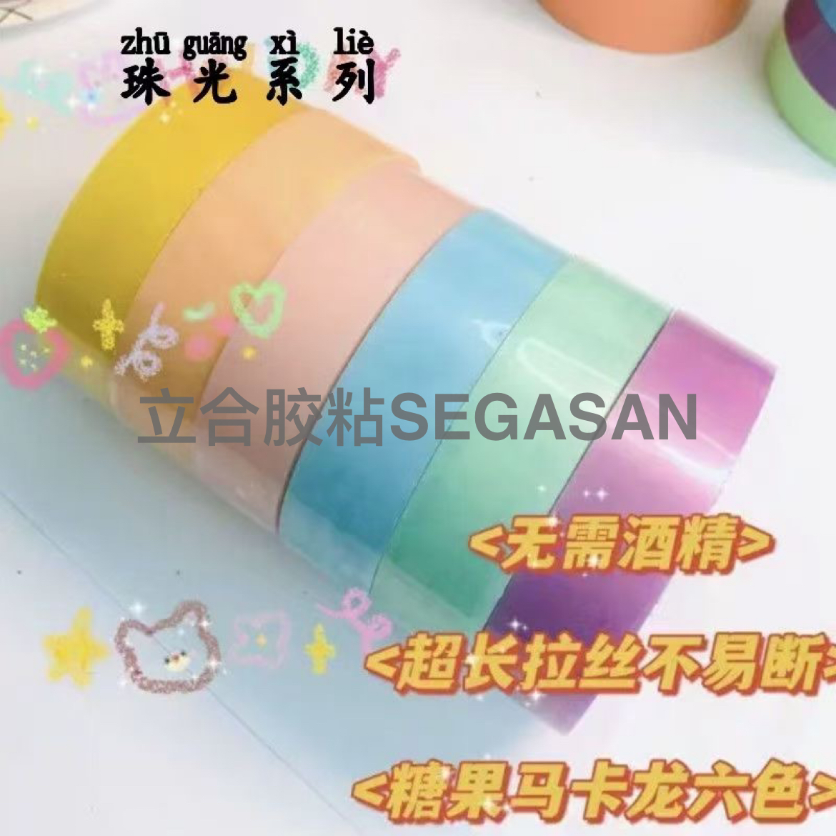 大卷4.8珠光马卡龙彩色胶带网红diang球不断丝学生新手解压粘粘球