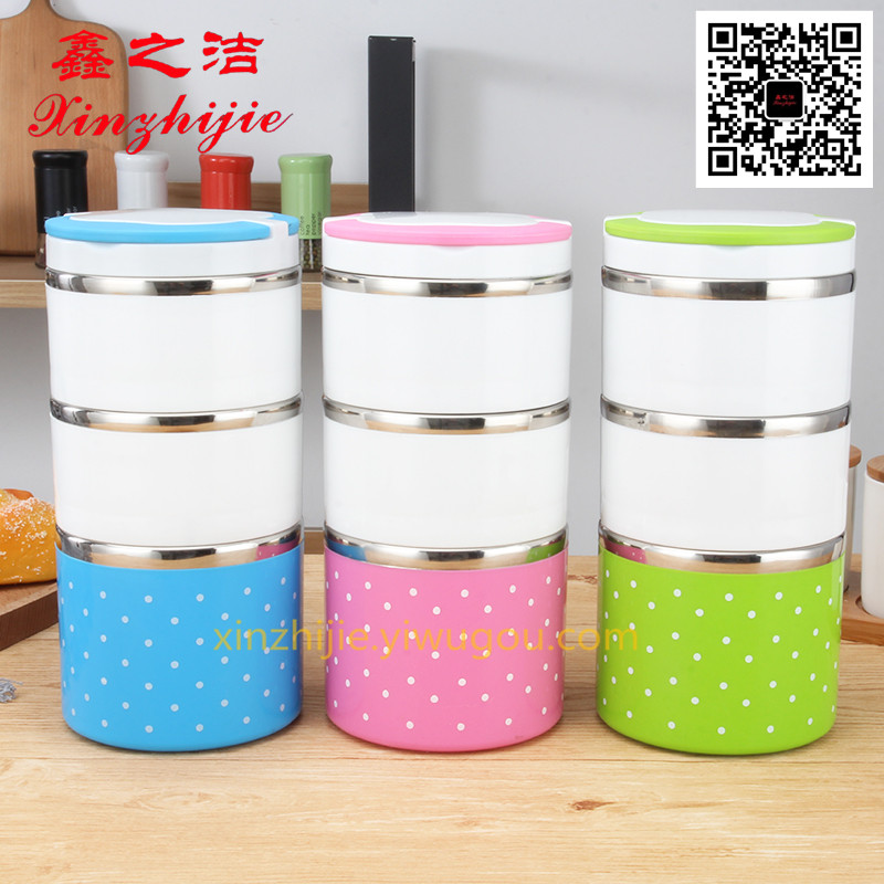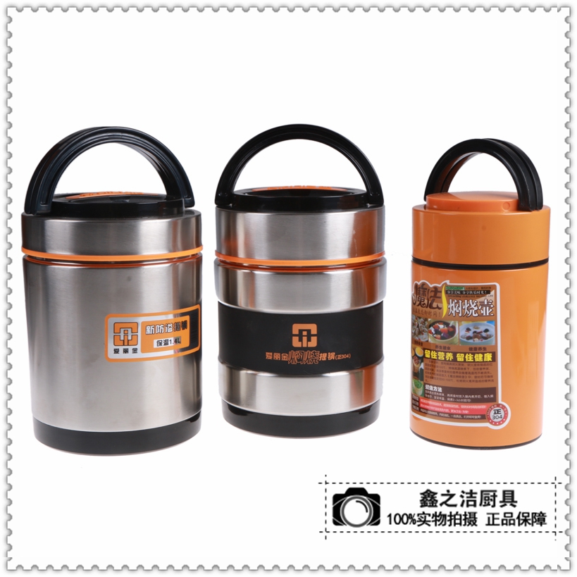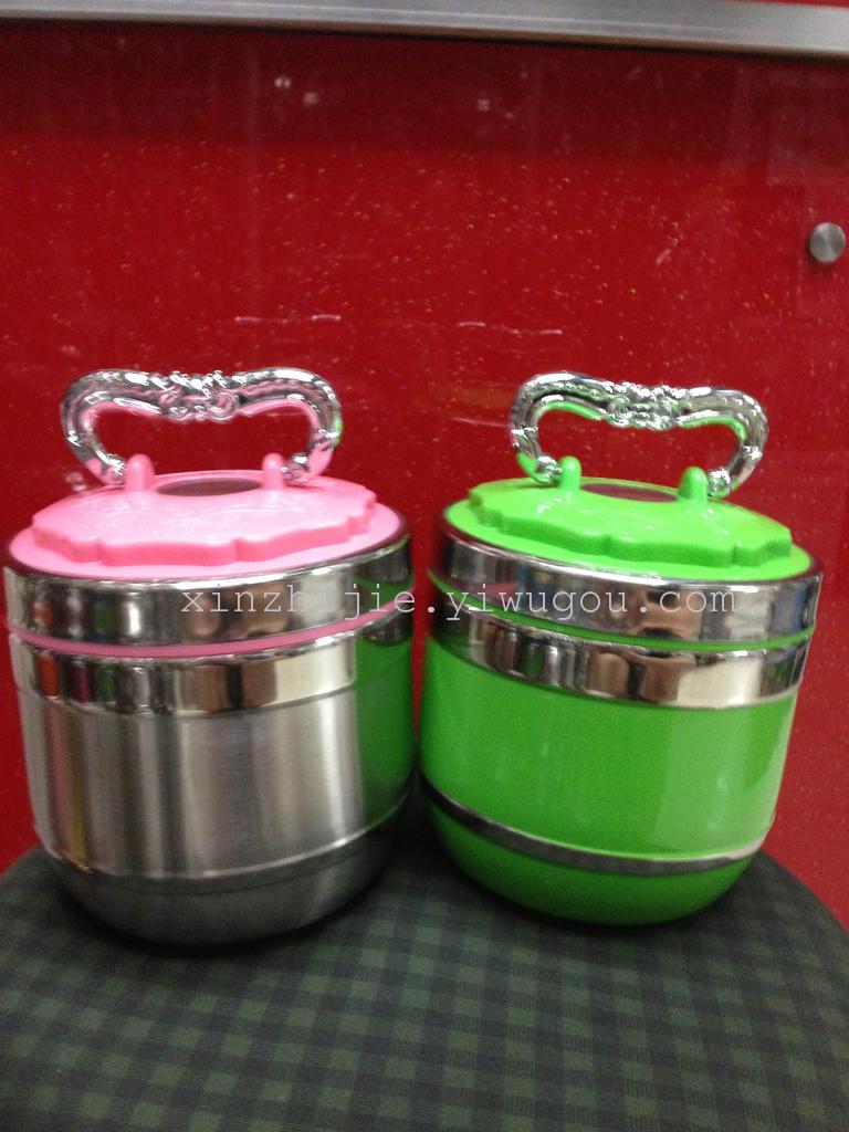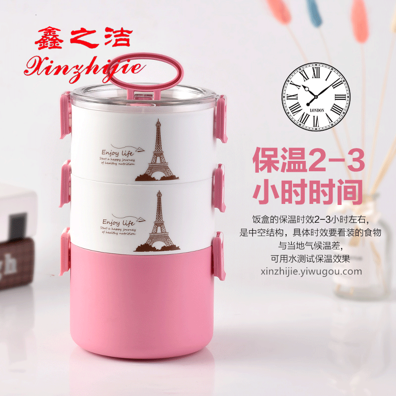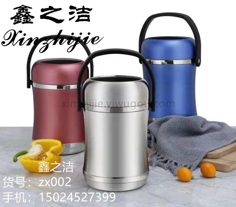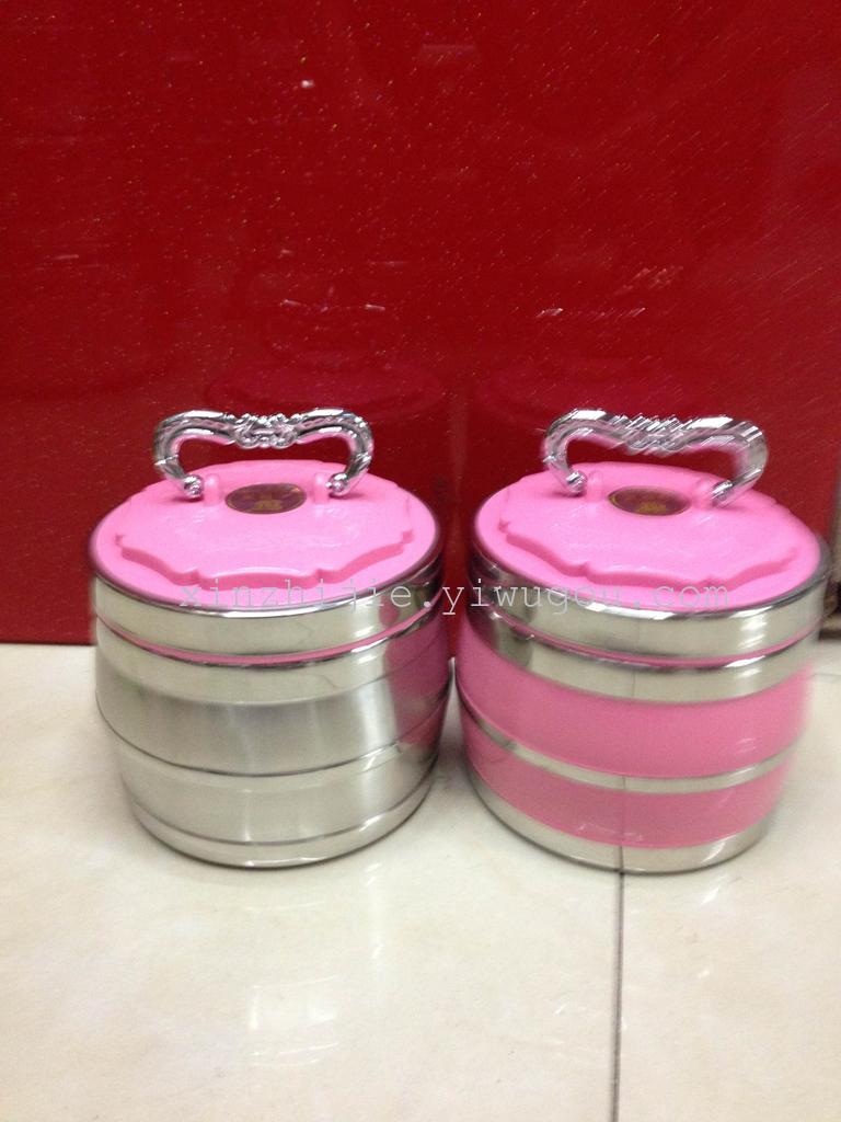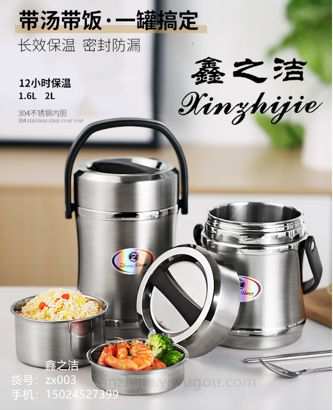 鑫之洁不锈钢餐具201小蛮腰不锈钢真空保温桶手提便携三层可装汤