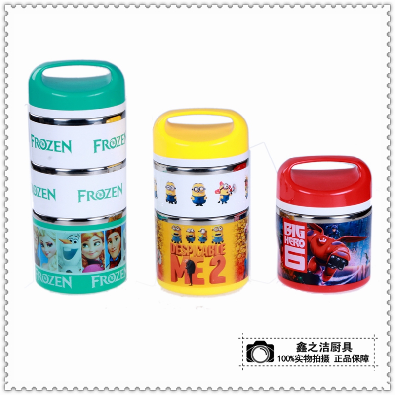 便当盒不锈钢厨具保温多层饭盒便当盒 密封防溢可爱卡通圆形饭盒
