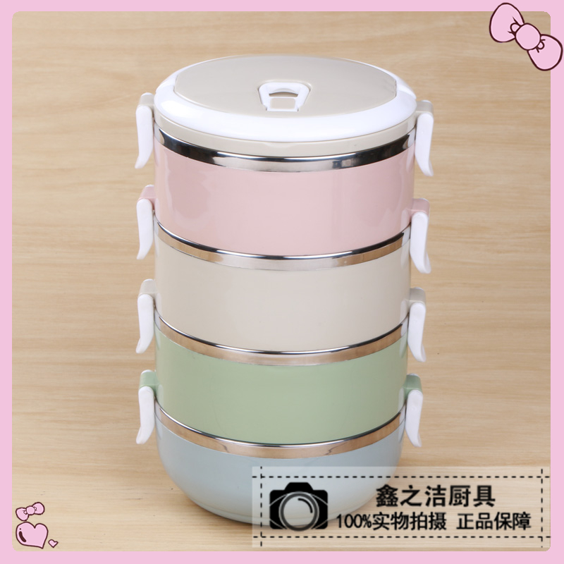 304不锈钢2层3层饭盒微波炉圆形多层保温饭盒便当盒学生带盖饭盒