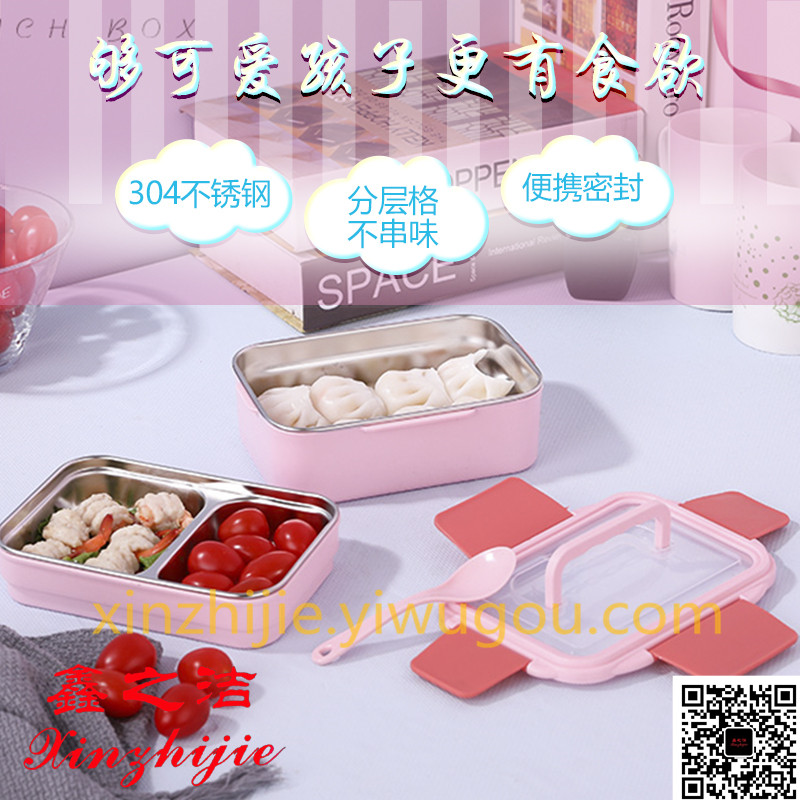 新款学生饭盒不锈钢双层分隔便当盒儿童中小学生食堂防烫带盖餐盒
