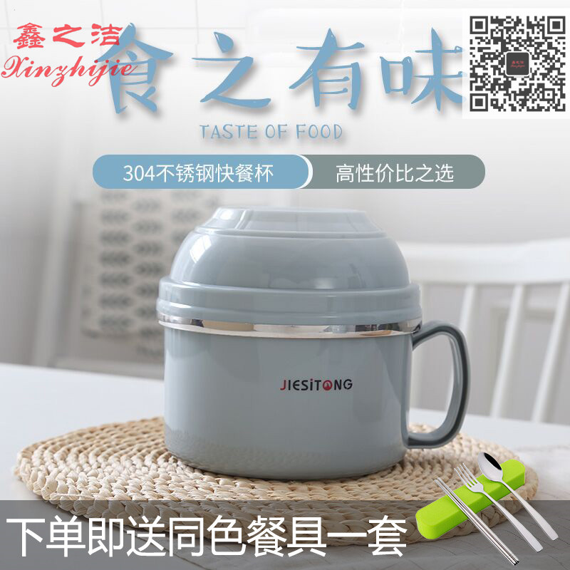 新品防摔米饭碗304不锈钢泡面碗学生儿童防烫汤碗带盖密封保家用