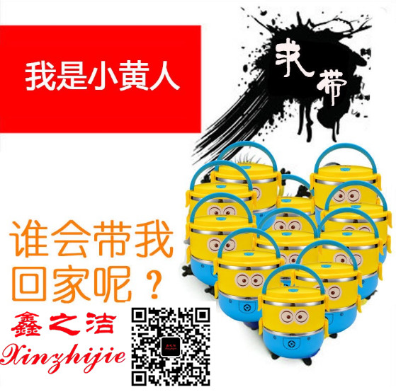 鑫之洁迷你儿童防烫保温饭盒 小学生便当盒 不锈钢多层保温饭盒