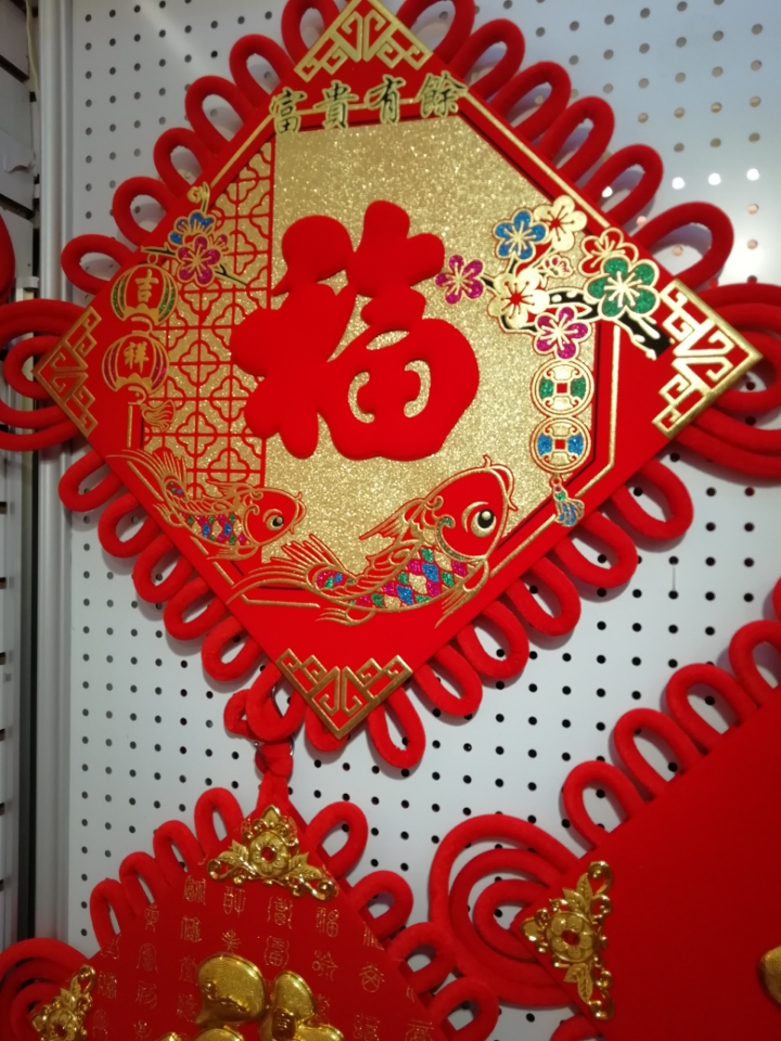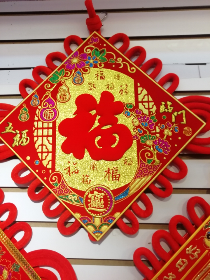 中国结印花贴红福挂件