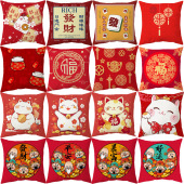 新年节日礼品印花抱枕吉祥文字财源滚滚抱枕套居家客厅沙发靠枕套