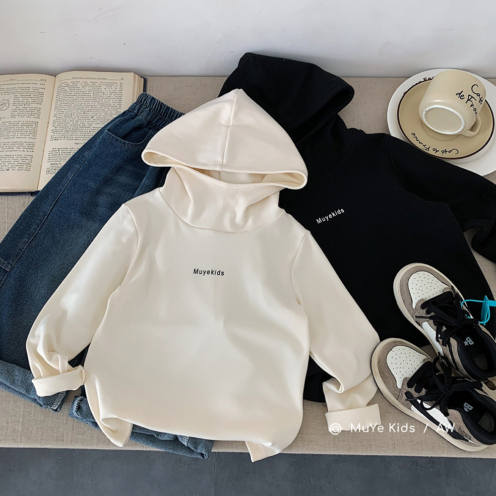 男童纯色加绒连帽卫衣2025新款中大童宽松冬装儿童湖州童装批发厚