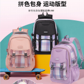网孔透气防水减负轻便防驼背小学生大容量防泼水撞色印花双肩背包