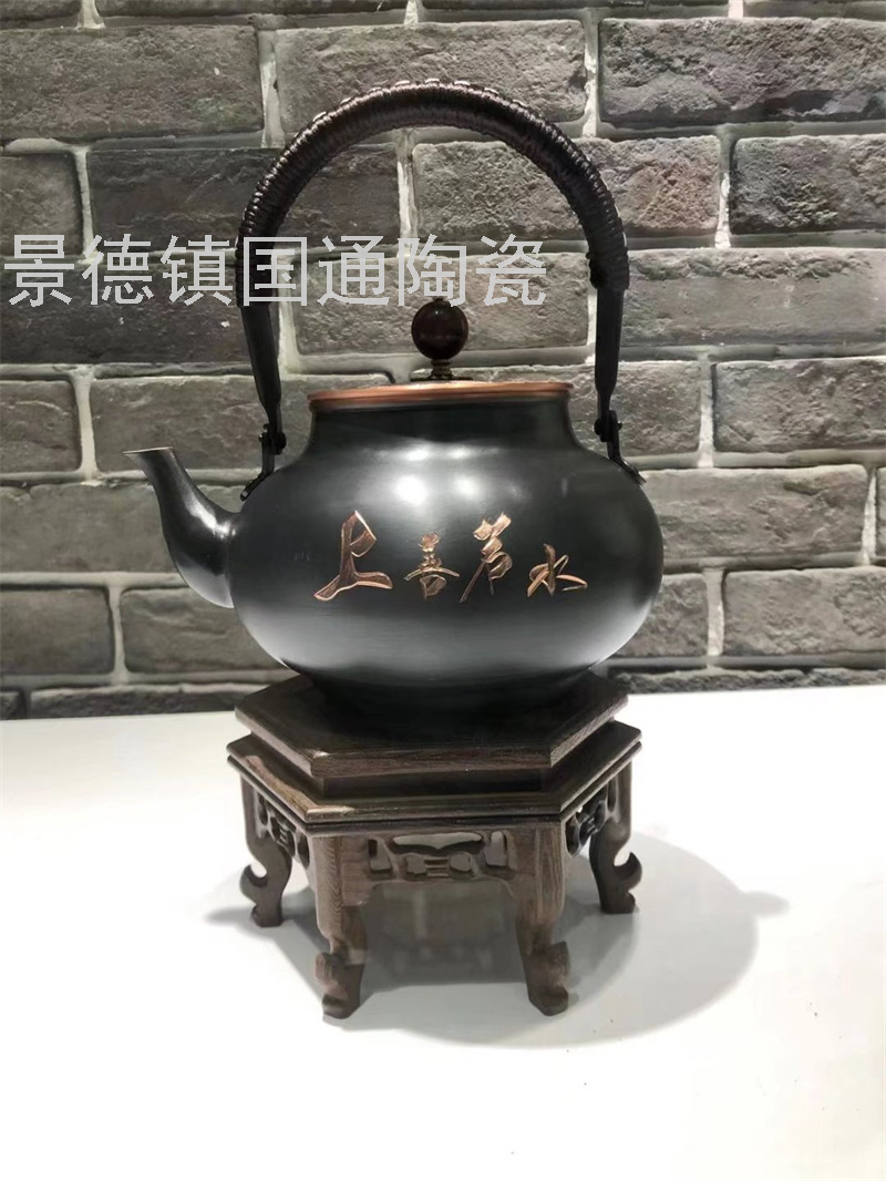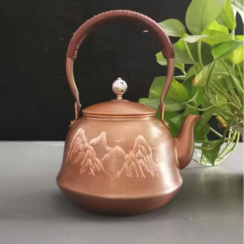 锻打铜茶壶刻花刻字纯铜壶出口日本铁壶茶道用品铜壶铁壶礼品套装