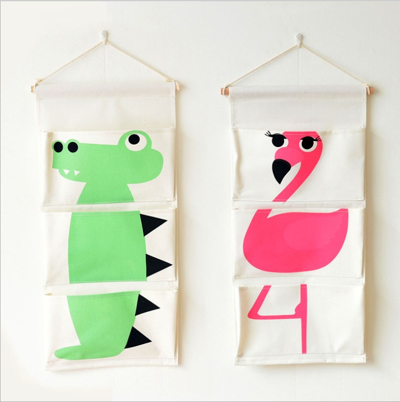 棉麻3兜六款卡通动物挂袋 门后收纳袋墙壁装饰挂袋帆布挂袋