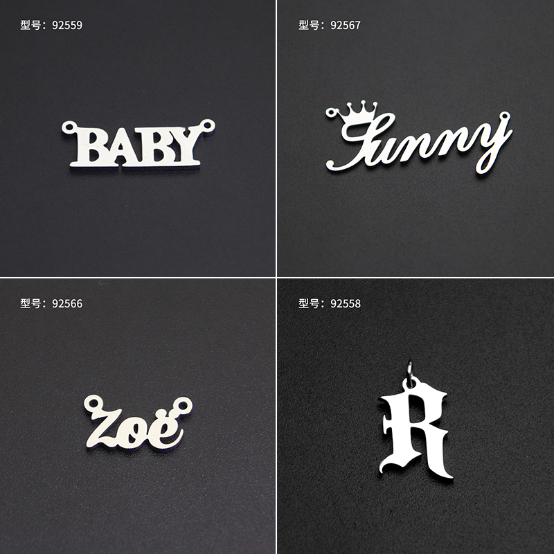 欧美跨境不锈钢切割英文数字字母项链吊挂坠配件wish亚马逊速卖通