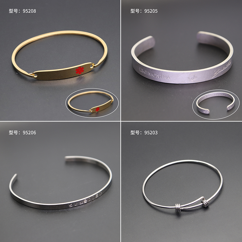 欧美爆款饰品不锈钢C形手镯开口手镯钛钢椭圆弯牌手链扁链可刻字