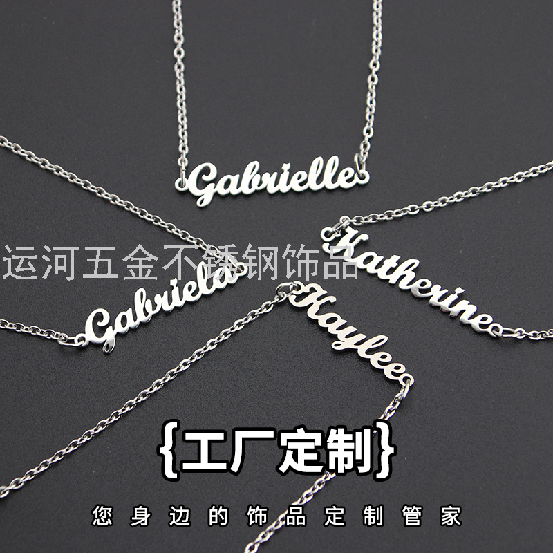 欧美跨境金属英文字母手链项链女来图来样加工定制不锈钢首饰厂家