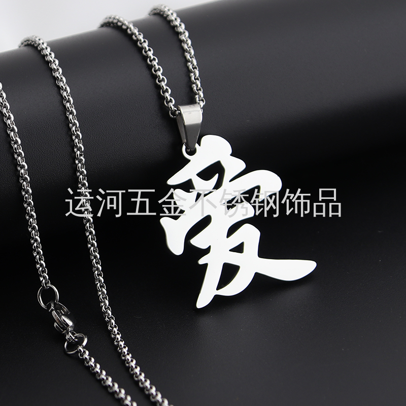 项链刻字欧美跨境项饰品8023LOVE礼物圆形钛钢项链来样加工定制