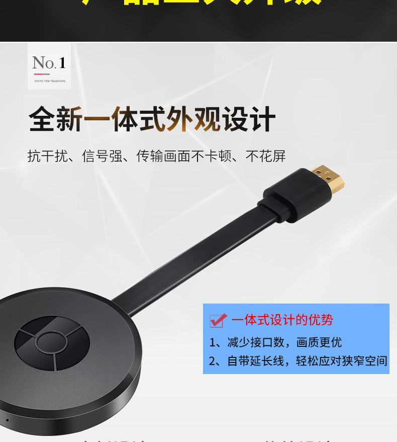 HDMI无线同屏器2.4g推送宝手机5g投屏产品有线4K双频anycast