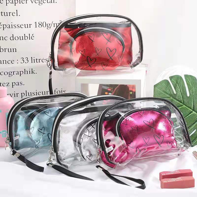 2020创意新款 爱心图案pvc化妆包 潮流时尚大容量 三件套