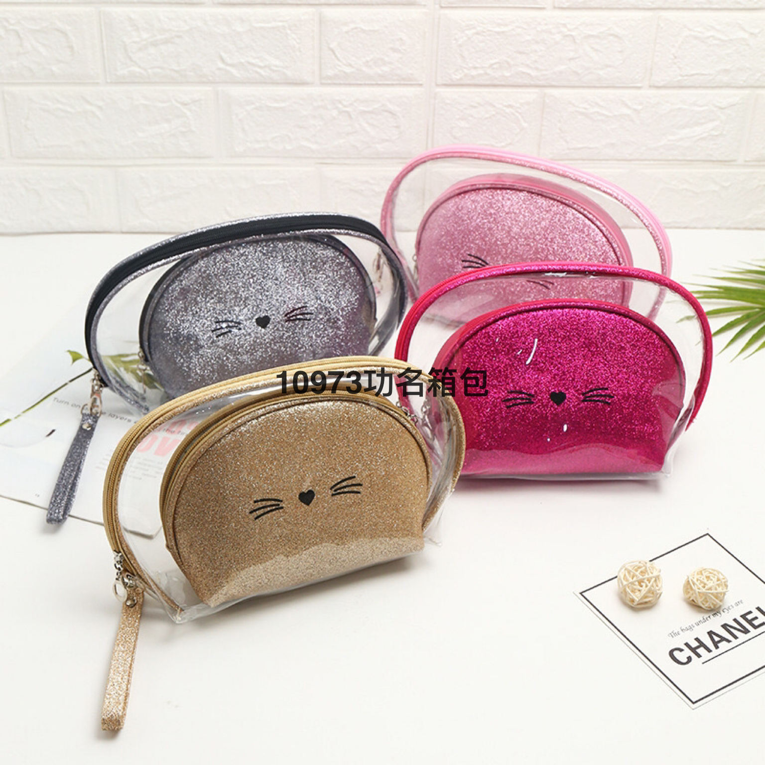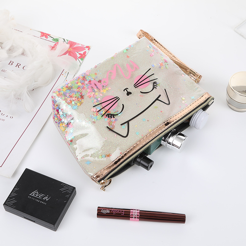 韩版时尚流沙可爱猫咪化妆包网红幻彩镭射化妆品收纳包便携洗漱包