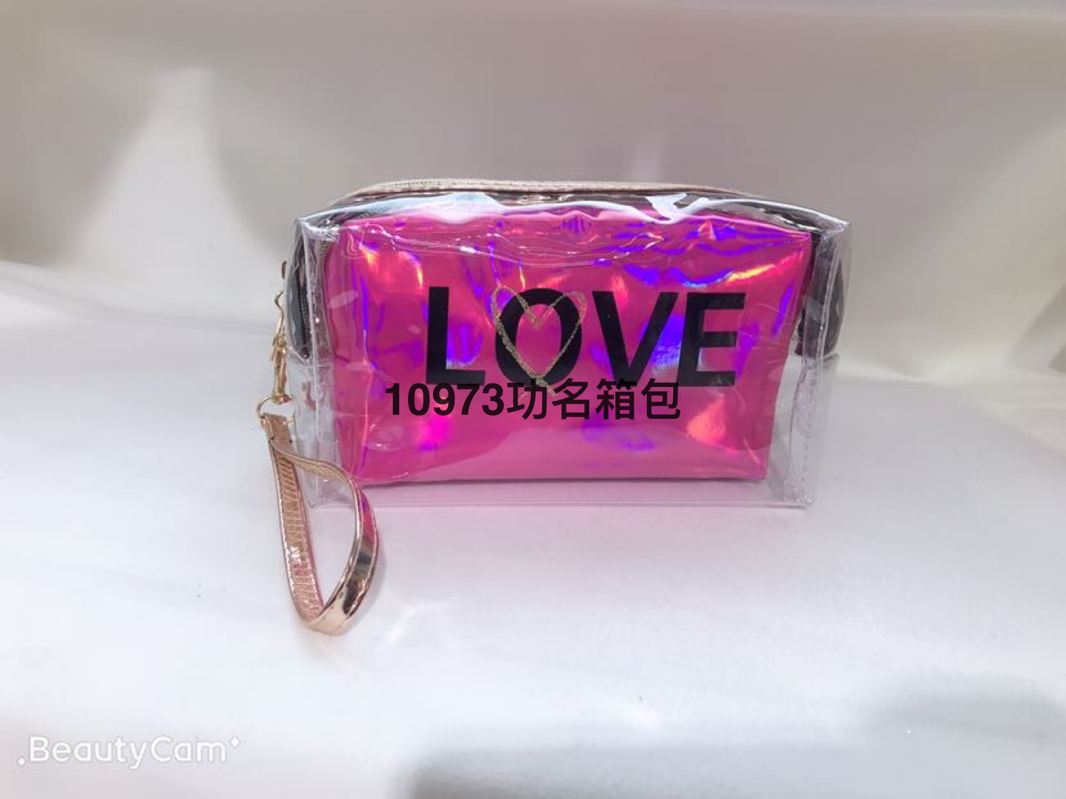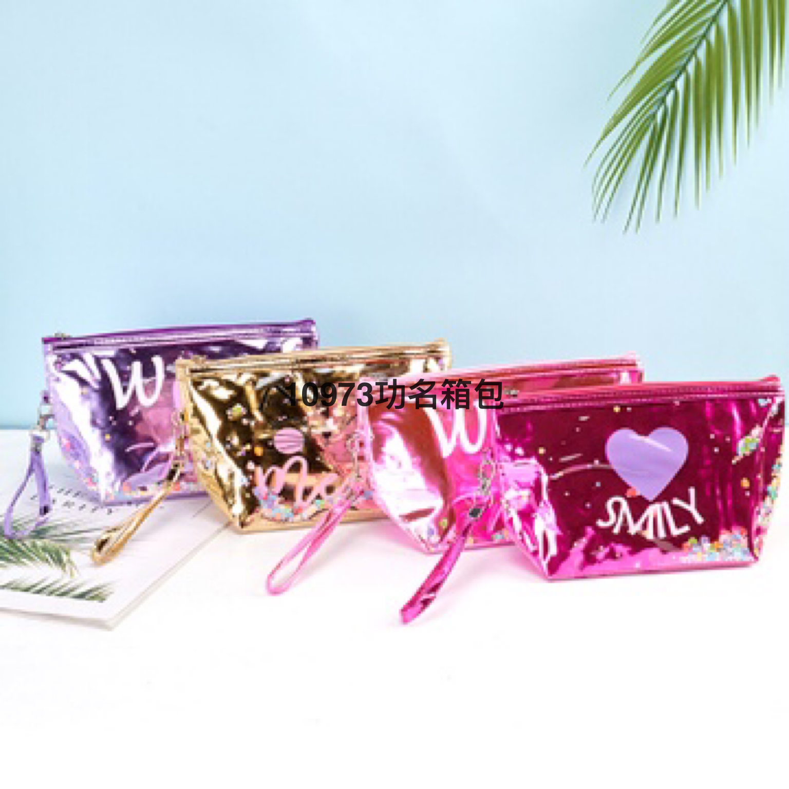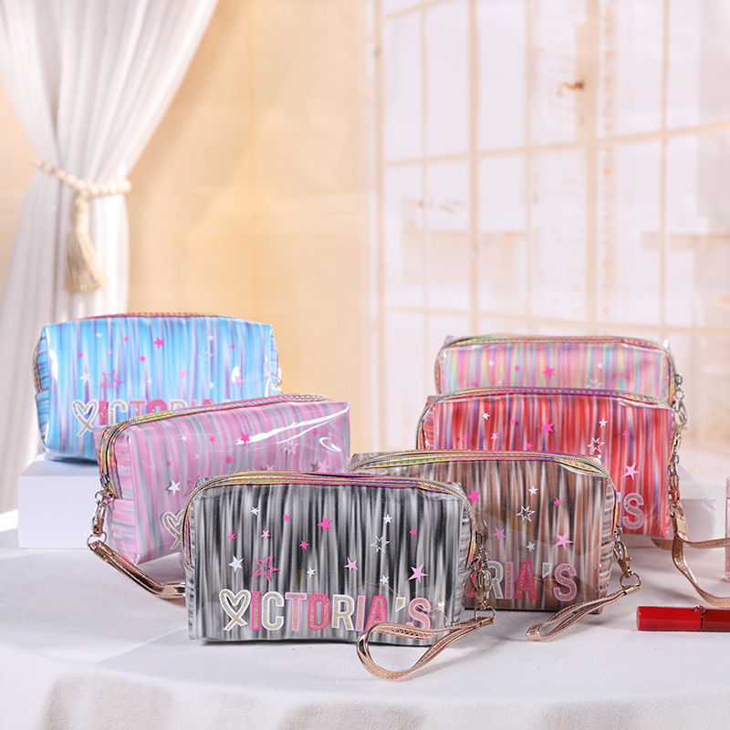 厂家直供女式爱心化妆包便捷旅游洗漱用收纳包PVC镭射收纳包定制