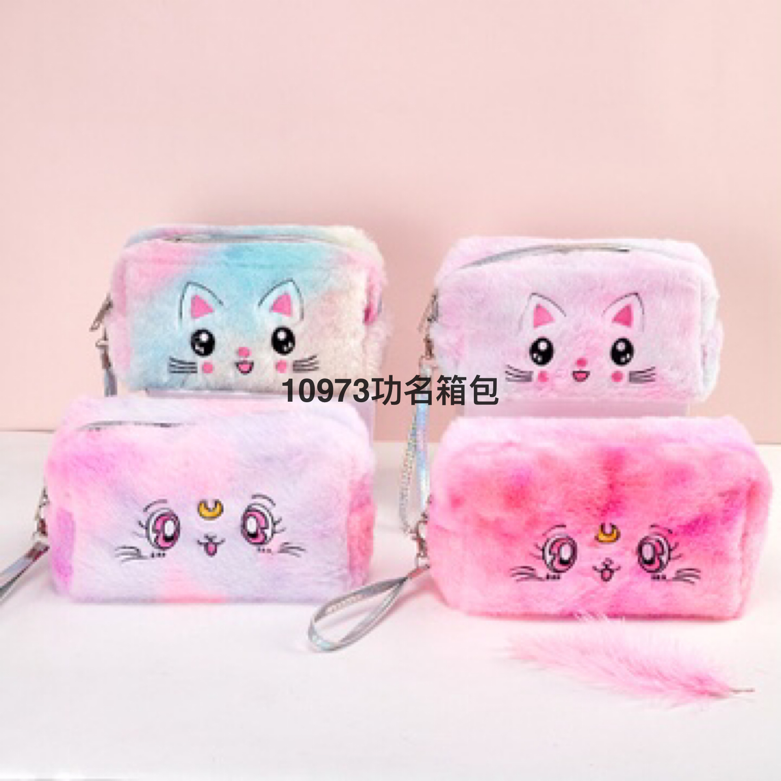 卡爱卡通毛绒化妆包学生便捷手提收纳包大容量旅游猫咪洗漱包定制