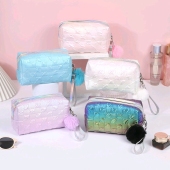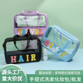 跨境新款TPU幻彩少女透明手提包便携旅行收纳包储物包化妆包女包