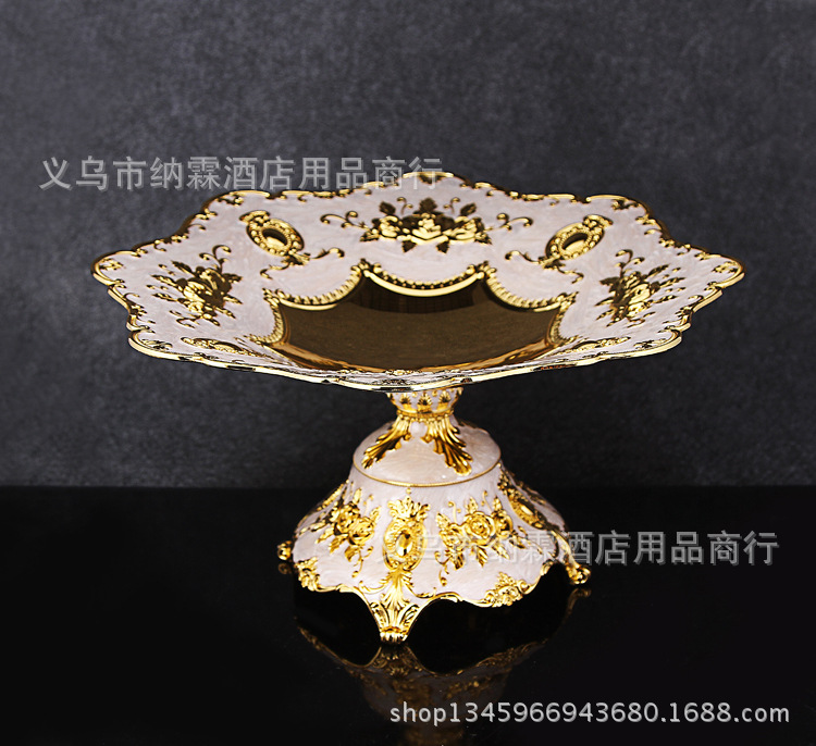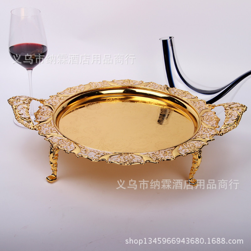 新款高档欧式金色银色托盘水果盘酒店家居用品KTV果盘合金大中小