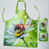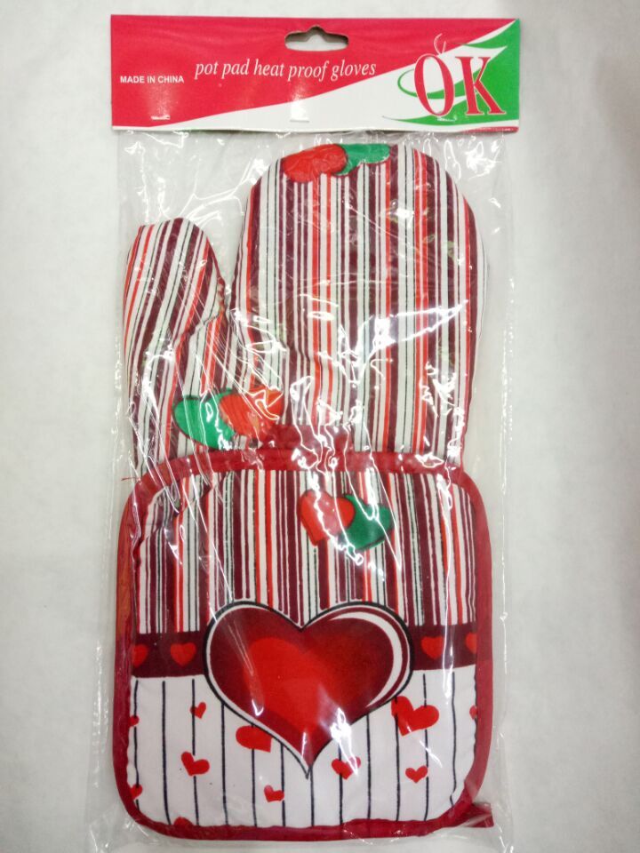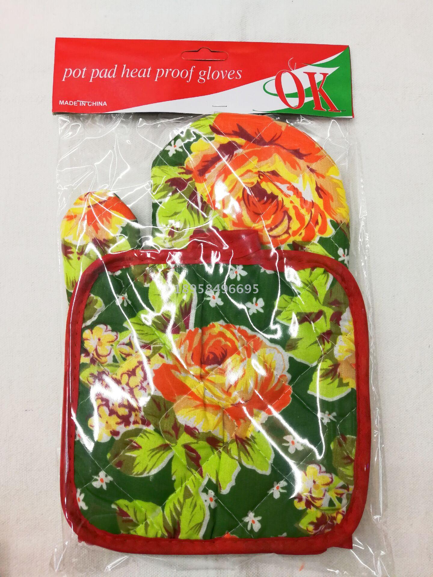 新款棉麻圆点手套垫子二件套厨房微波炉烤箱耐高温手套隔热垫批发