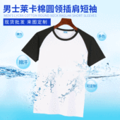 夏季莱卡棉短袖插肩撞色T恤工作服聚会班服DIY定制LOGO广告衫