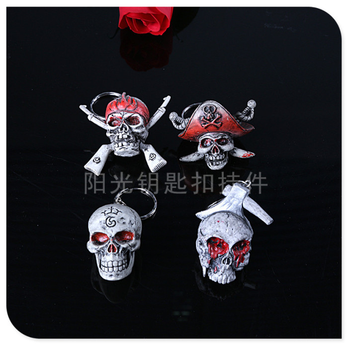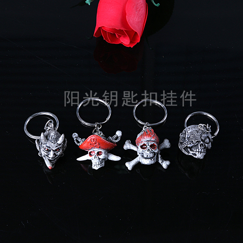 爆款PVC仿真万圣节骷髅鬼头钥匙圈礼品批发钥匙扣挂件厂家直销