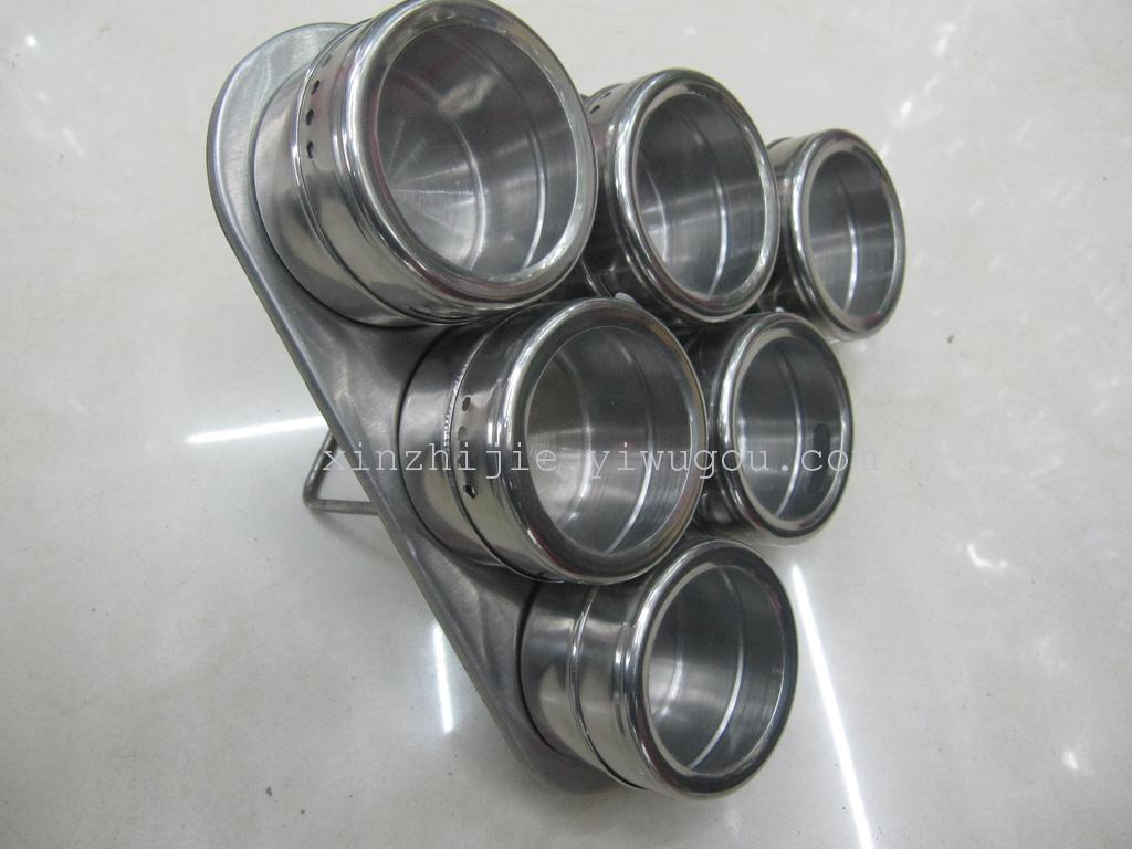 不锈钢厨具不锈钢三角形调味盒 6味调料盒套装 厨房调味罐