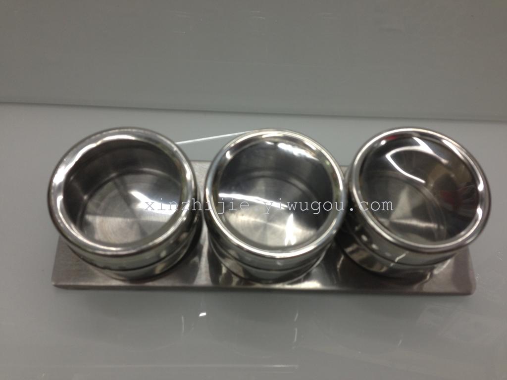 不锈钢厨具不锈钢调味盒 3味调料盒套装 厨房调味罐