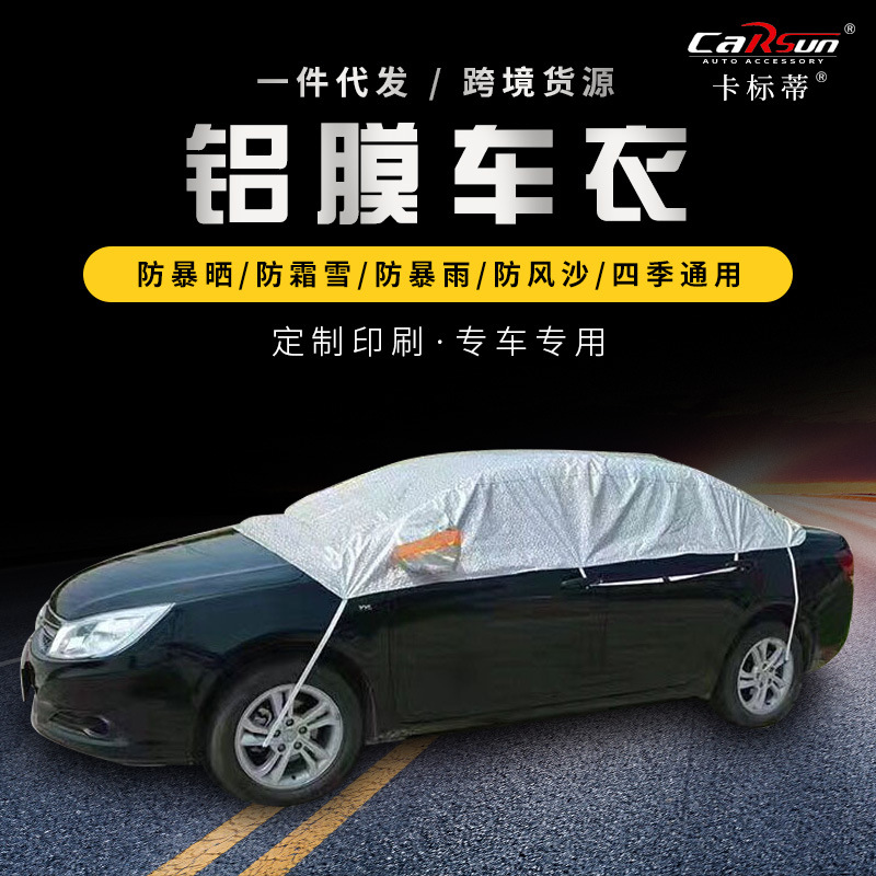 新款汽车遮阳罩电商爆款铝膜防晒半车罩冬季挡雨挡雪隔热加棉车罩