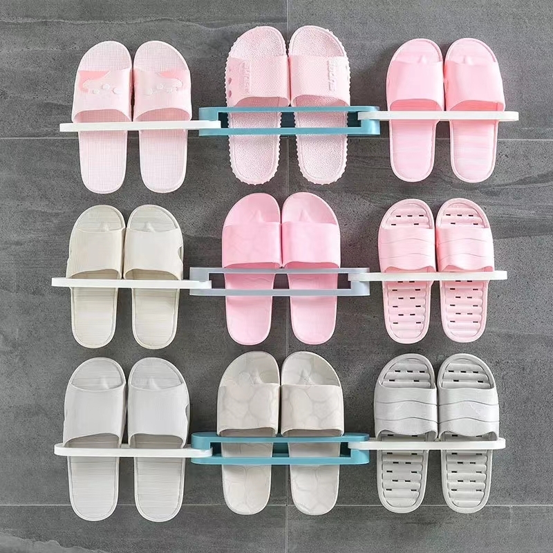 三合一鞋架调节鞋架折叠鞋架伸缩免打孔浴室收纳拖鞋架门后毛巾架