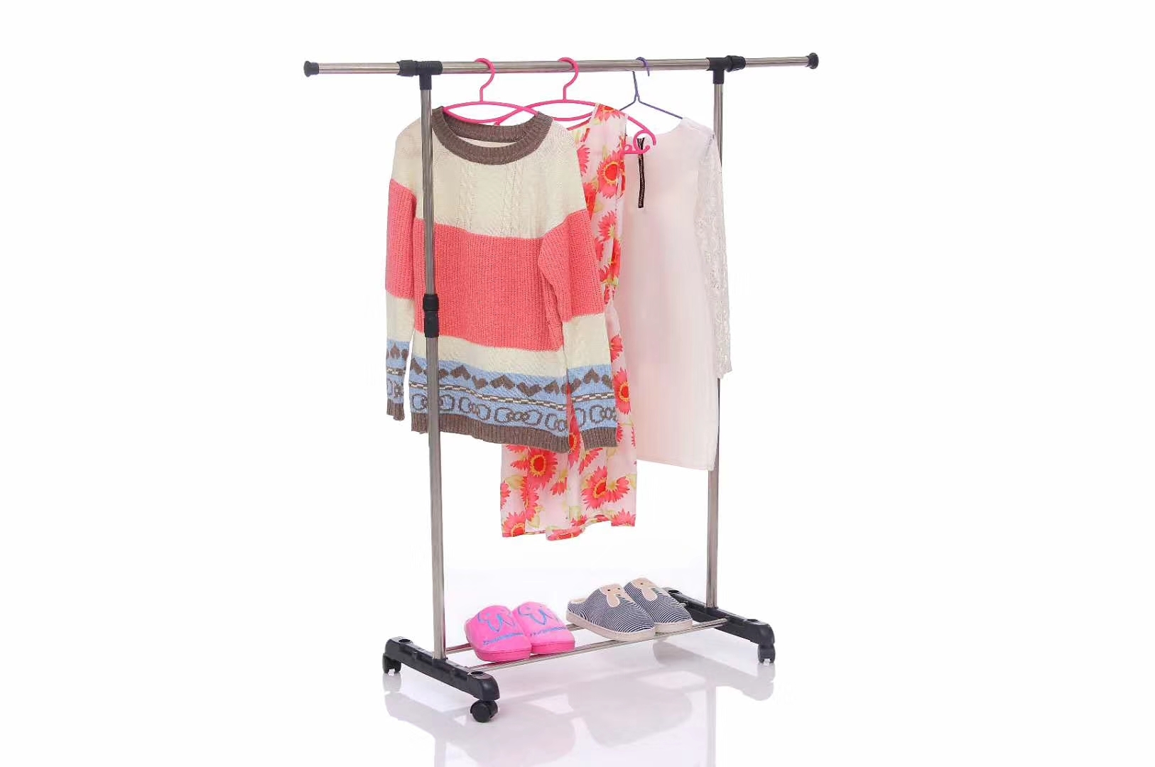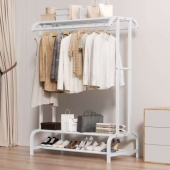 新款跨境热销简易双排多功能收纳衣帽架家用卧室落地置物架挂衣架