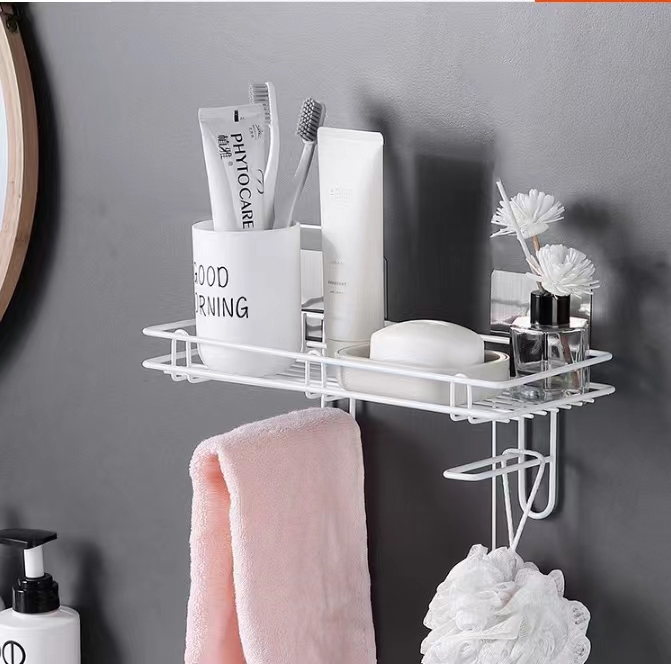 铁艺壁挂置物架挂篮收纳整理架卫生间浴室挂架铁艺毛巾架免打孔架