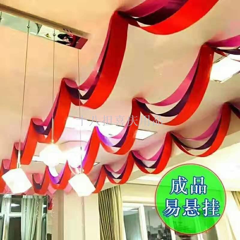 波浪旗彩带拉花 商场店庆装饰 开业庆典布置黄金珠宝店天花板挂饰