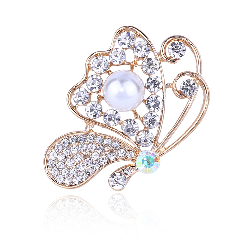 蝴蝶水钻胸针 新款韩版珍珠胸针合金胸花女 别针衣饰花卉造型配饰