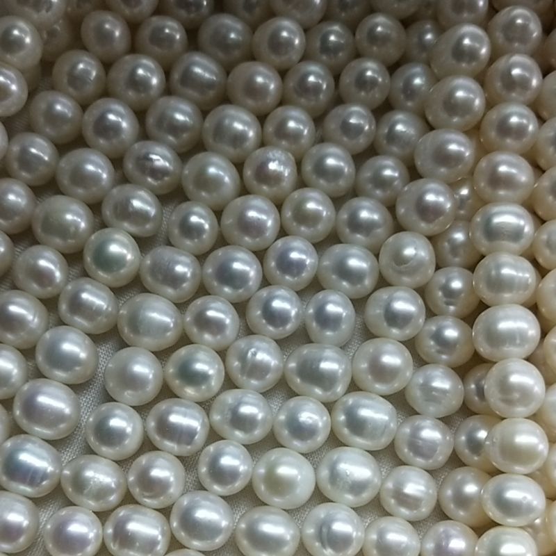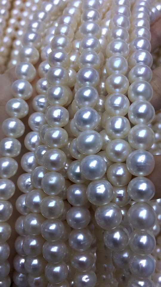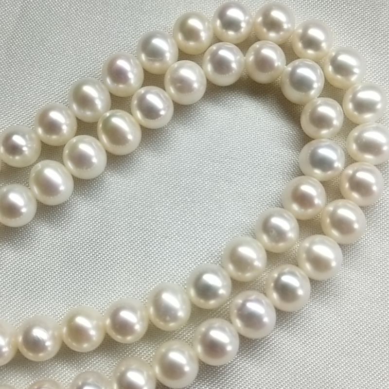 淡水珍珠半成品项链串珠8-9mm近短圆润微瑕中档品质珍珠项链