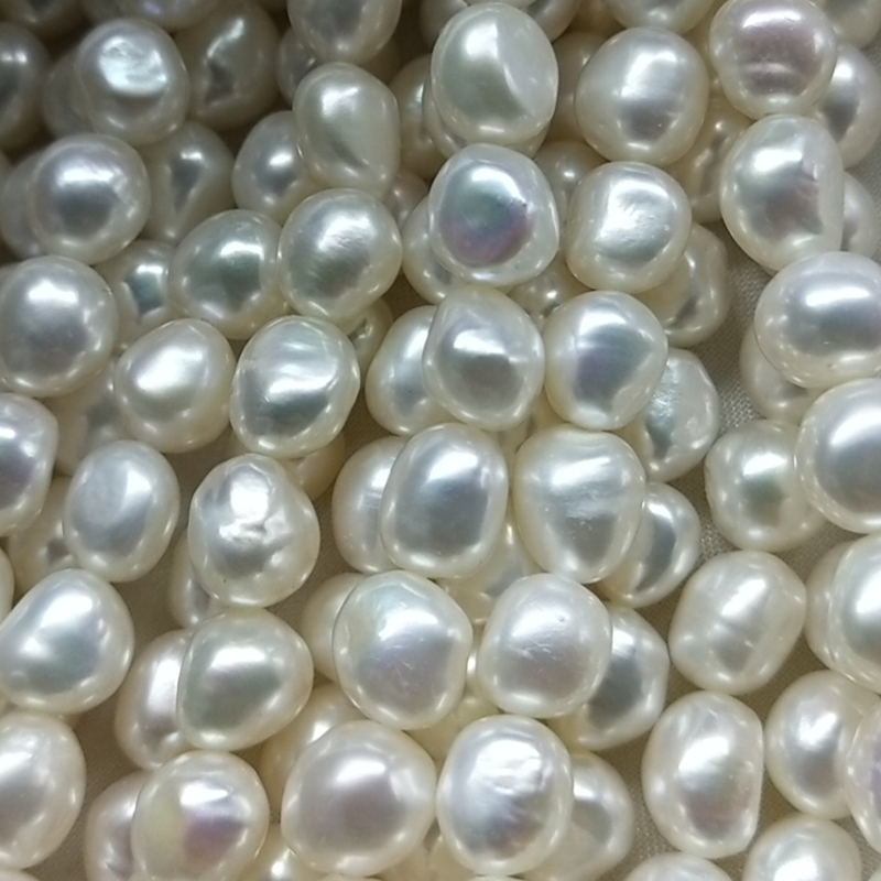 淡水珍珠半成品项链串珠9-10mm不规则直打两面光异形珍珠微瑕品质