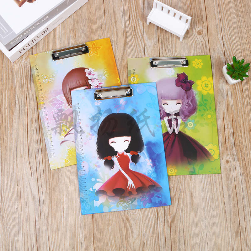 A4纸板文件夹学生用文具可爱卡通横版韩版演讲稿夹文件记事带夹子