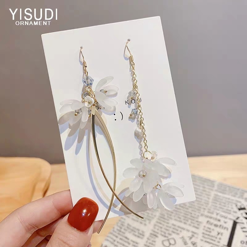 白色花朵小花流苏耳环 不对称亚克力长款耳钩 韩国气质网红超仙