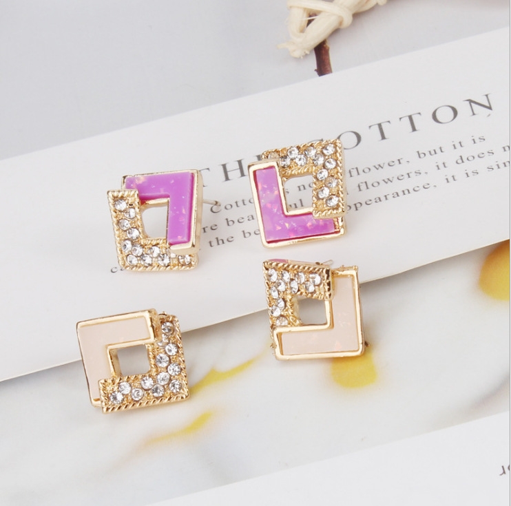925银针猫眼石耳环韩国气质几何方形镶钻耳坠ins简约耳饰女批发