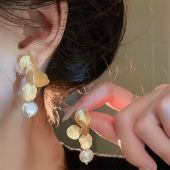 925银针小众设计高级金属花朵珍珠吊坠耳环复古法式流苏耳钉耳饰