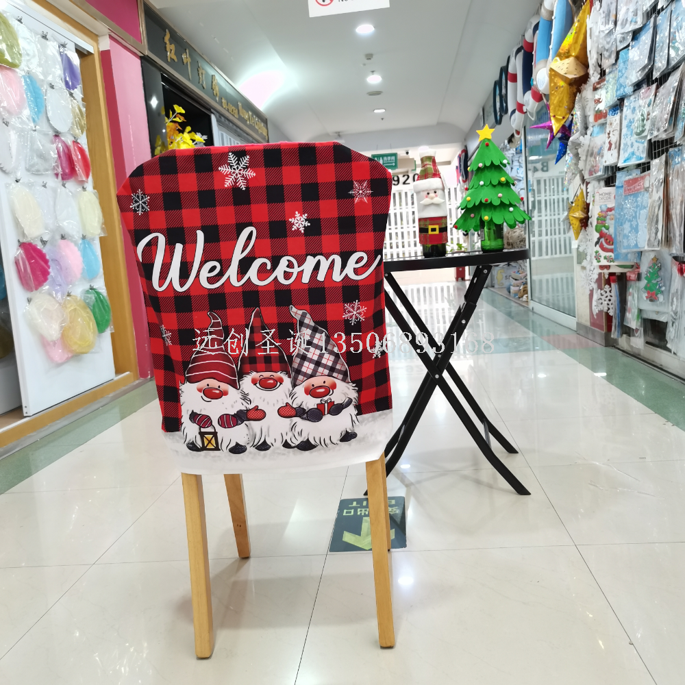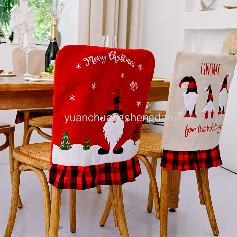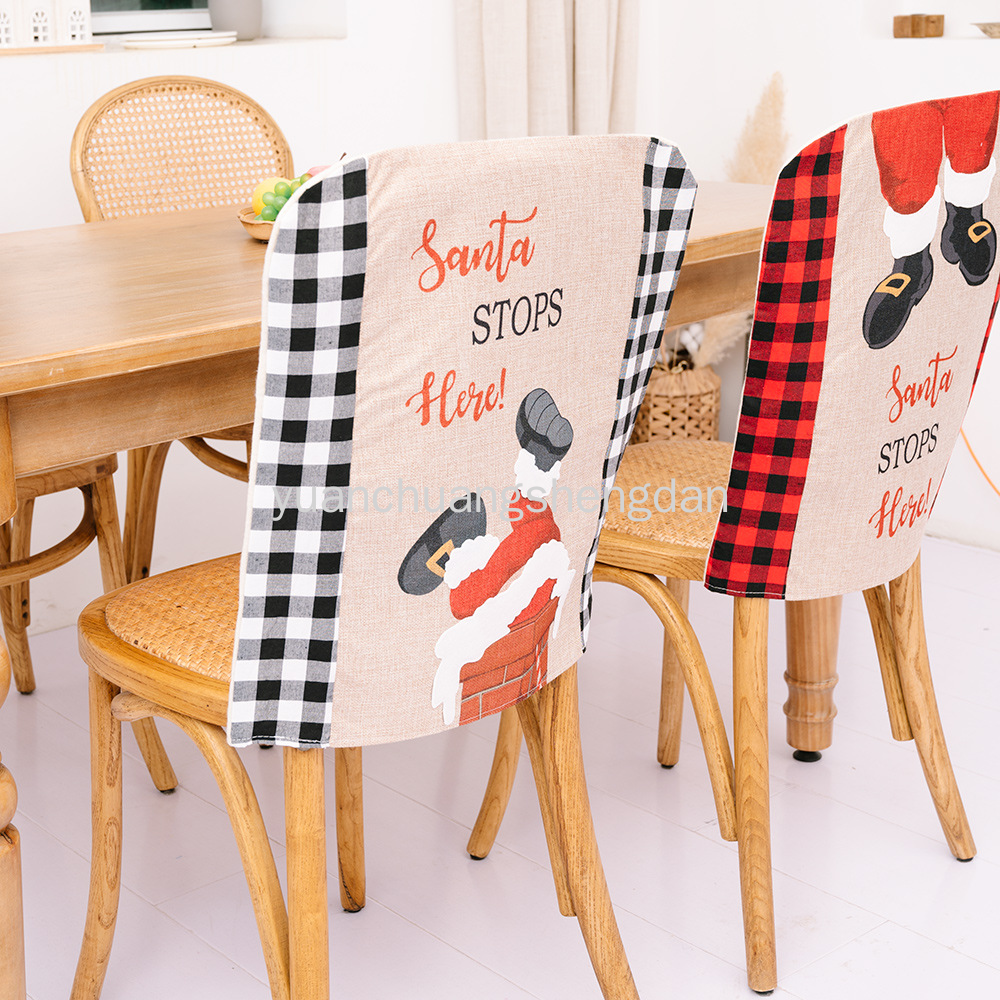 跨境新品圣诞装饰STOP HERE格子椅子套圣诞节餐桌节日气氛装饰