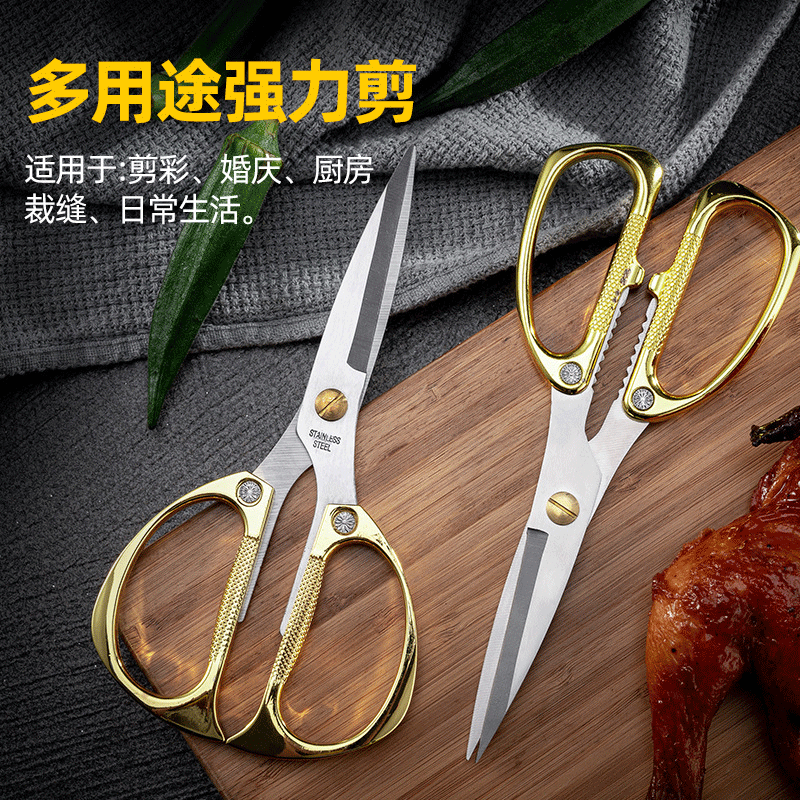 不锈钢镀金家用裁缝剪刀合金强力厨房鸡骨剪园林剪彩龙凤剪礼品剪