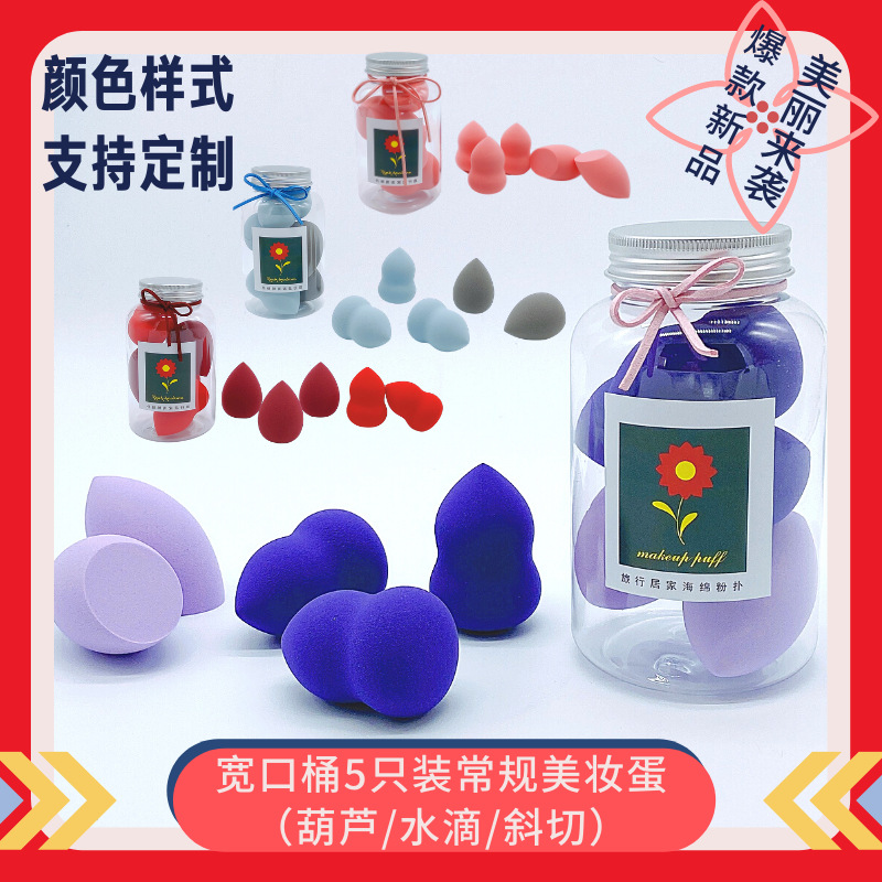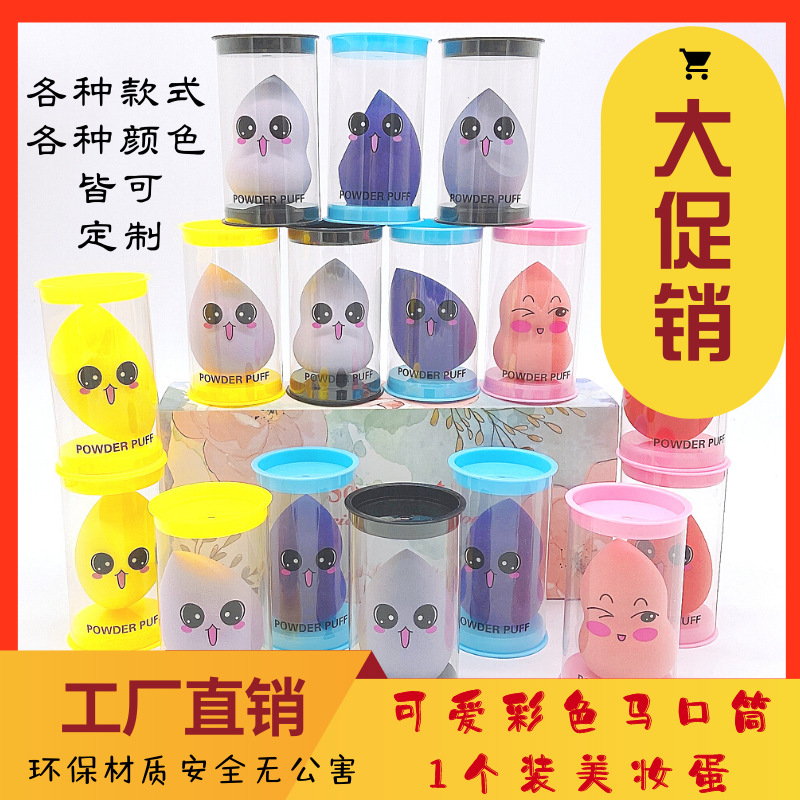 厂家美妆蛋粉扑化妆工具葫芦斜切水滴可爱表情彩色透明马口圆筒桶