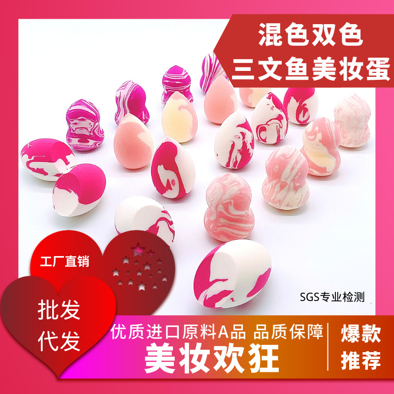 厂家直销非乳胶巨软泡水大理石三纹鱼混色葫芦水滴斜切美妆蛋粉扑