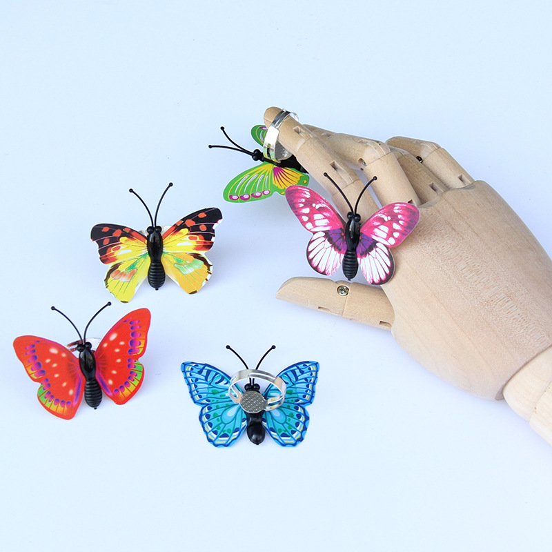 彩色蝴蝶指环20个装 仿真蝴蝶可调节大小戒指DIY手工装饰配件