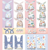 新款兔耳朵饼干袋 糖果袋烘焙包装袋50只 可爱雪花酥牛轧糖袋子