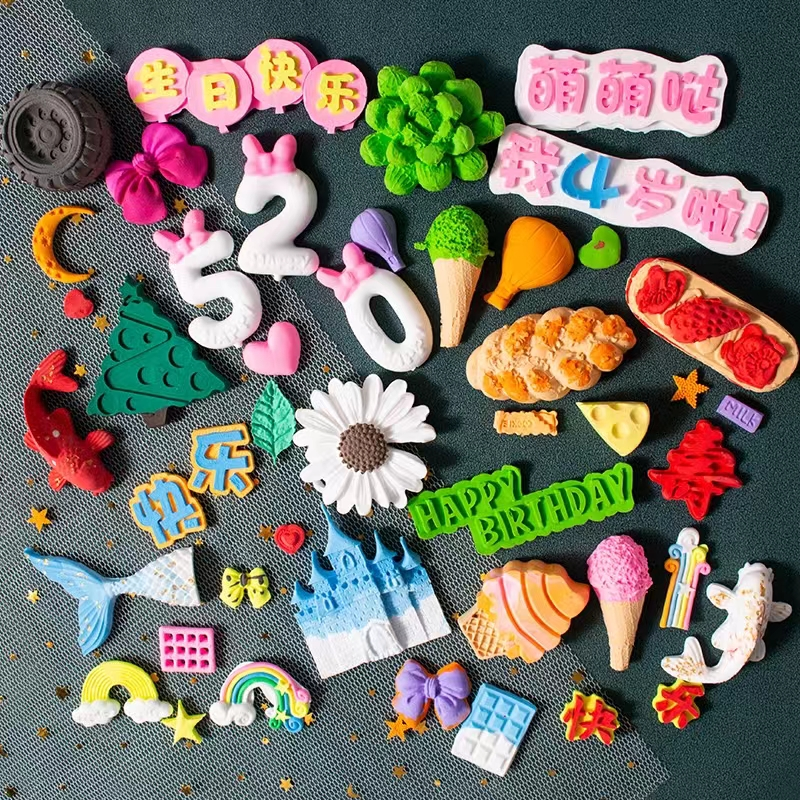 翻糖硅胶模具烘焙工具冰淇淋蛋糕巧克力纽扣五角星甜品装饰烘焙模
